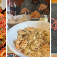 Clams, mussels, shrimp, and calamari in a spicy garlic plum tomato sauce over a bed on linguini. Spicy.